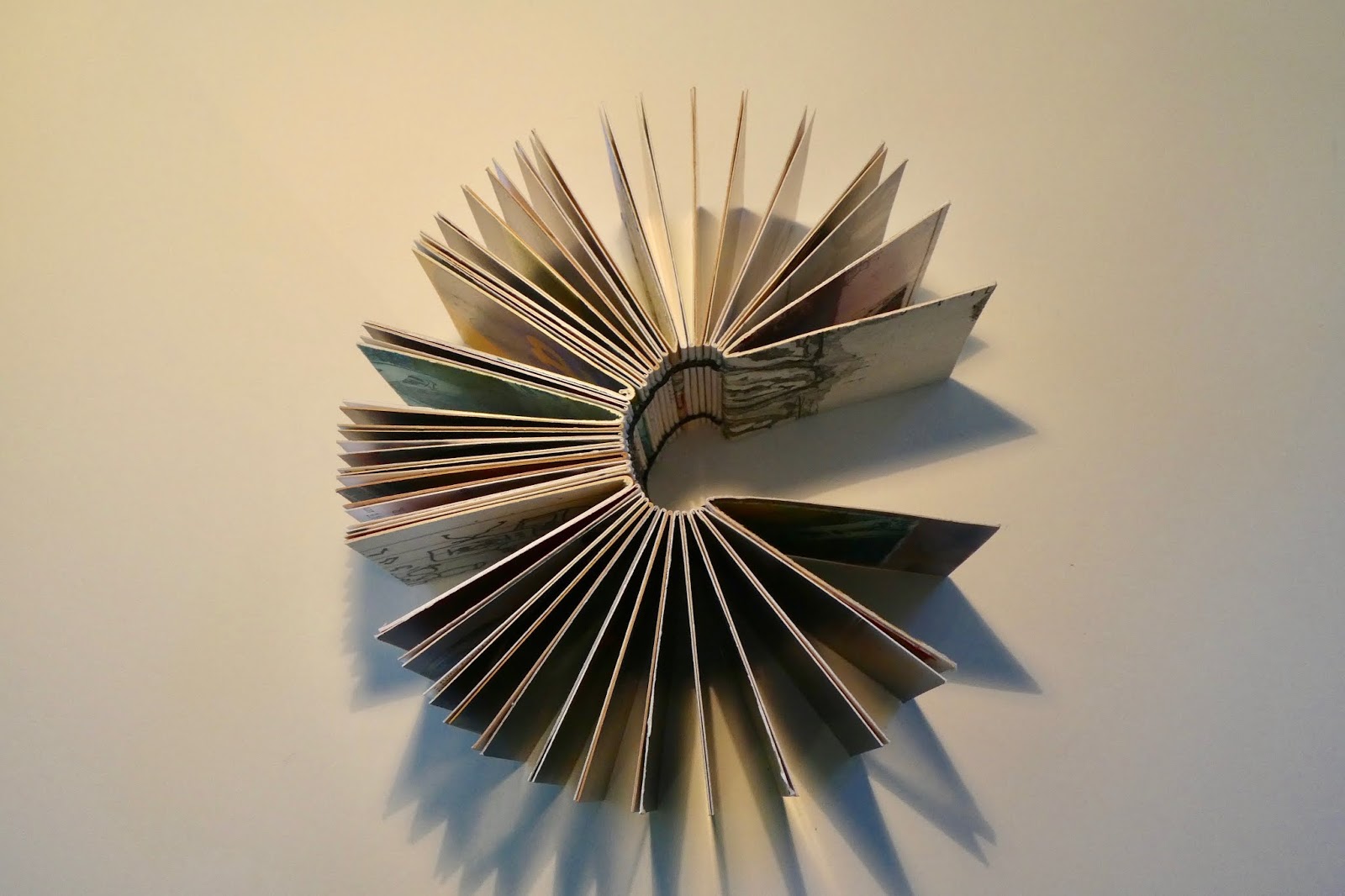 The book was made using cut down postcards with a simple coptic binding. It is quite lovely to handle as it is small and fluid in the hand though I think that the photographs do it more justice than it deserves.